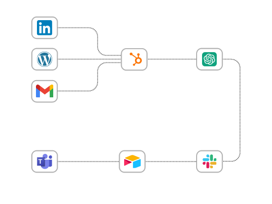 Ready-to-deploy workflows that instantly connect your existing tools. Lead from website → CRM → Slack notification → follow-up sequence → reporting dashboard. All automatic.